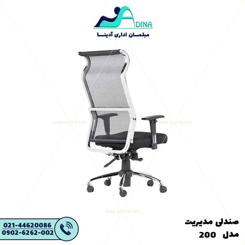 صندلی مدیریتی 200 با طراحی خاص و جذاب مناسب برای تمام اتاق های مدیریت با سبک مدرن. پایه پنچ پر استیل براق به همراه 36 ماه گارانتی. این صندلی مدیریتی با بهترین قیمت اتاق مدیریت محیط کار شما را زیبا میکند.با طراحی و تولید کاملا ارگونومی جهت آرامش خاطر مشتریان عزیز شرکت مبلمان اداری آدینا.