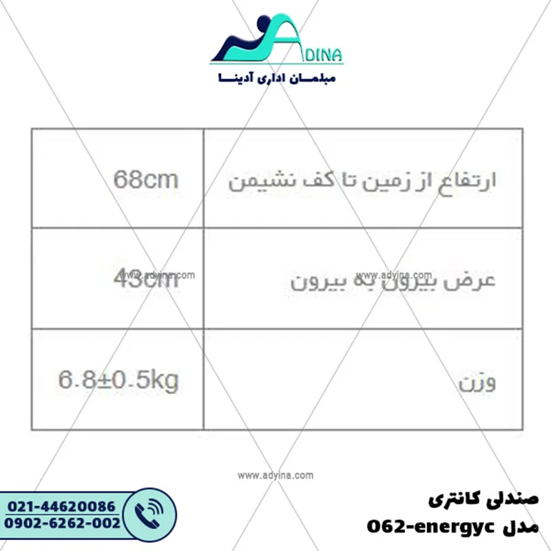 صندلی کانتری مدل O62-energyc با طراحی خاص و جذاب مناسب برای تمام محیط های اداری با سبک مدرن. پایه ثابت استیل براق به همراه 36 ماه گارانتی. این صندلی کانتری با بهترین قیمت، محیط کار شما را زیباتر میکند.با طراحی و تولید کاملا ارگونومی جهت آرامش خاطر مشتریان عزیز شرکت مبلمان اداری آدینا.
