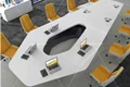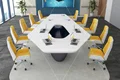 این میز کنفرانس به شکل چند ضلعی طراحی و ساخته شده است. البته , شما میتوانید این میز را در طرح ها و شکل های دیگر از جمله: گرد یا دایره , بیضی شکل , یو شکل و ... نیز سفارش دهید.
